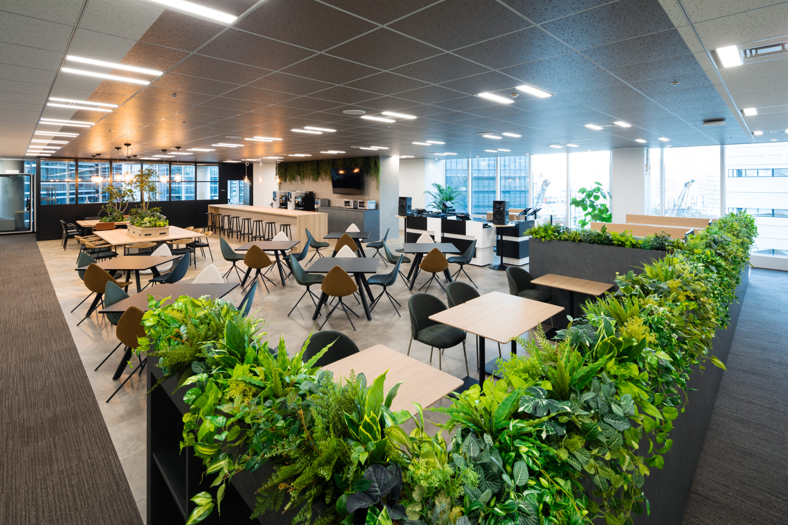 社内の交流場として、ラウンジスペースを社内に設けております。 社員同士でランチを食べたり、当社ならではの新商品を使用したDJパーティーなども開催。 コミュニケーションが取りやすいように配慮された空間で、勤務中・勤務後の社員の憩いの場となっています。 ています。
